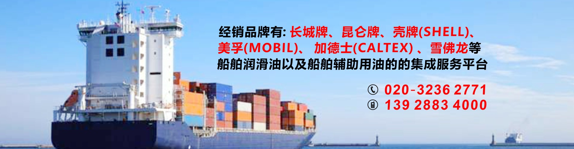 公司代理中石化長城潤滑油以及中石化國際品牌SINOPEC潤滑油,經(jīng)銷品牌有昆侖牌、殼牌(SHELL)、美孚(MOBIL)、加德士(CALTEX)、雪佛龍(CHEVRON)是船舶潤滑油以及船舶輔助用油的的集成服務(wù)平臺,也可按照船東要求提供船舶消防救生用品、勞保用品、五金燈具及甲板用品等船舶配套產(chǎn)品。